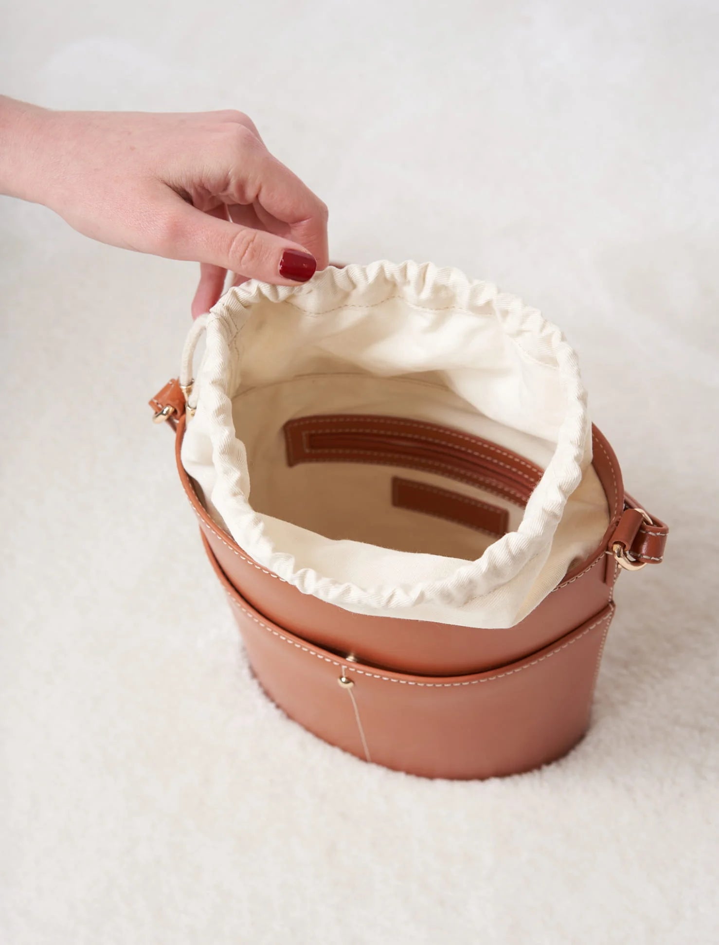 - Poche intérieure plaquée avec passepoil en cuir et poche intérieure zippée